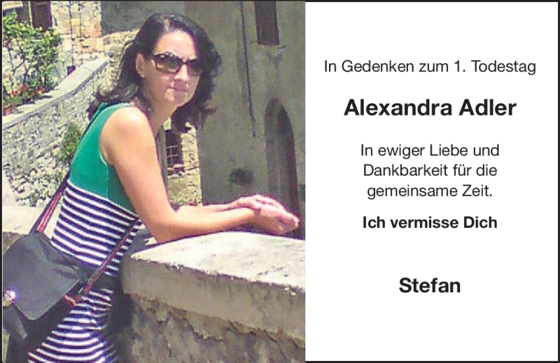Hier finden Sie alle Traueranzeigen aus der Zeitung, die bisher für Alexandra Adler erschienen sind. Weitere Traueranzeigen, die in der Zeitung erscheinen, werden hier ebenfalls aufgelistet