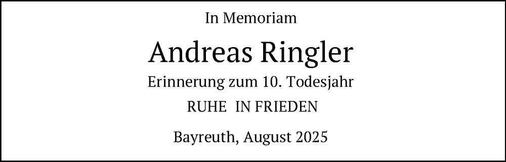 Hier finden Sie alle Traueranzeigen aus der Zeitung, die bisher für Andreas Ringler erschienen sind. Weitere Traueranzeigen, die in der Zeitung erscheinen, werden hier ebenfalls aufgelistet