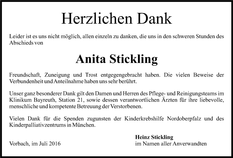 Hier finden Sie alle Traueranzeigen aus der Zeitung, die bisher für Anita Stickling erschienen sind. Weitere Traueranzeigen, die in der Zeitung erscheinen, werden hier ebenfalls aufgelistet