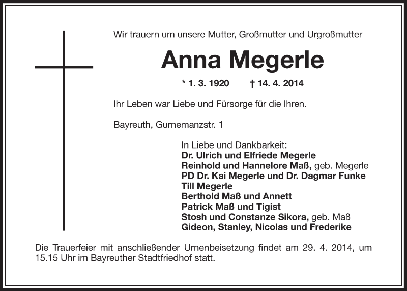 Hier finden Sie alle Traueranzeigen aus der Zeitung, die bisher für Anna Megerle erschienen sind. Weitere Traueranzeigen, die in der Zeitung erscheinen, werden hier ebenfalls aufgelistet