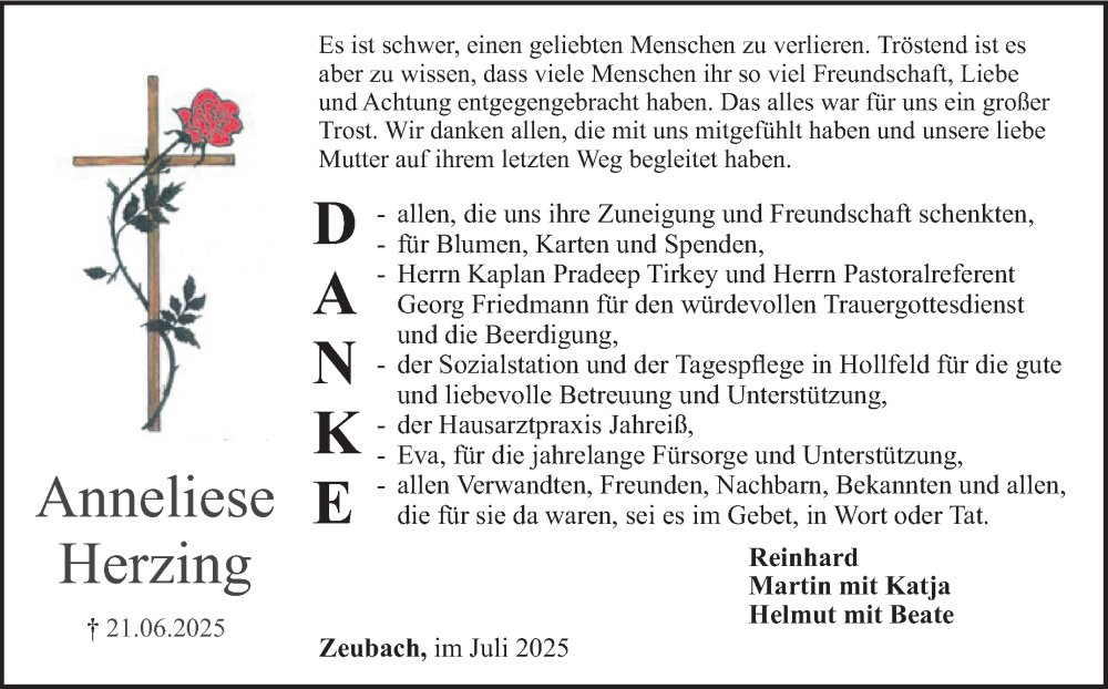 Hier finden Sie alle Traueranzeigen aus der Zeitung, die bisher für Anneliese Herzing erschienen sind. Weitere Traueranzeigen, die in der Zeitung erscheinen, werden hier ebenfalls aufgelistet