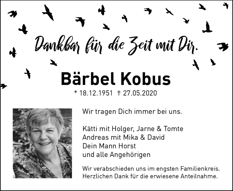 Hier finden Sie alle Traueranzeigen aus der Zeitung, die bisher für Bärbel Kobus erschienen sind. Weitere Traueranzeigen, die in der Zeitung erscheinen, werden hier ebenfalls aufgelistet