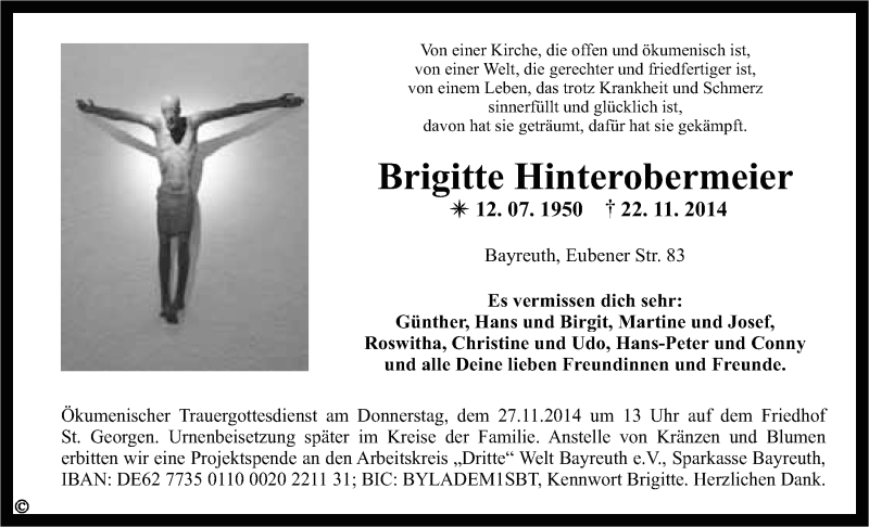 Hier finden Sie alle Traueranzeigen aus der Zeitung, die bisher für Brigitte Hinterobermeier erschienen sind. Weitere Traueranzeigen, die in der Zeitung erscheinen, werden hier ebenfalls aufgelistet