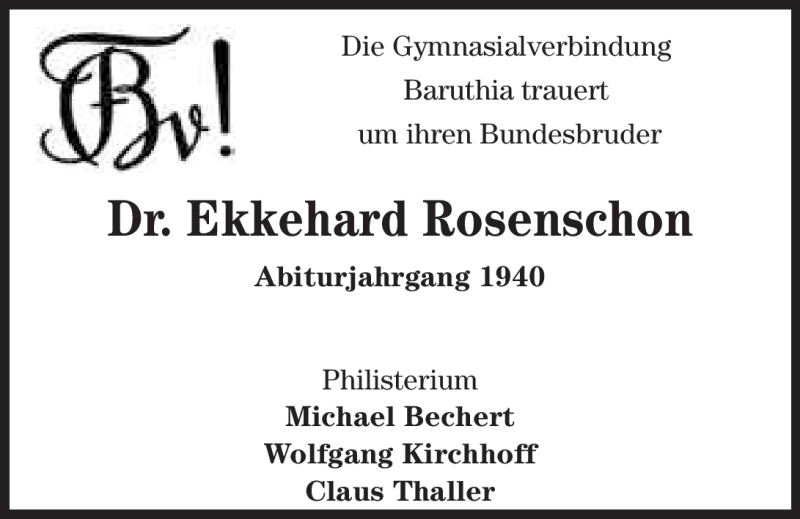 Hier finden Sie alle Traueranzeigen aus der Zeitung, die bisher für Ekkehard Rosenschon erschienen sind. Weitere Traueranzeigen, die in der Zeitung erscheinen, werden hier ebenfalls aufgelistet