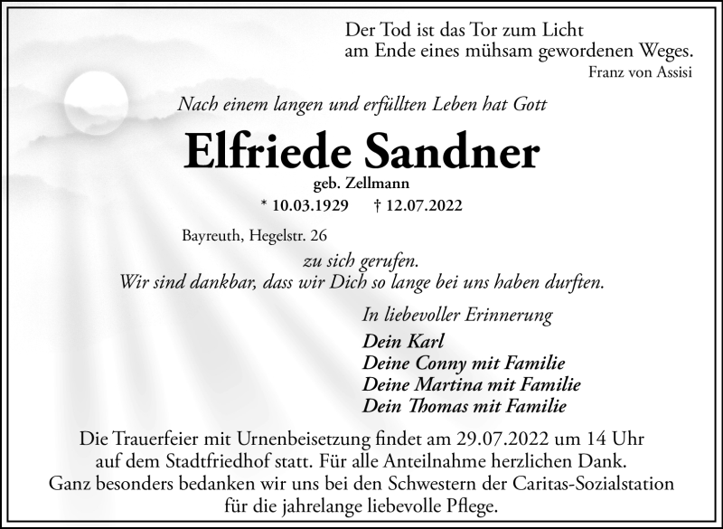Hier finden Sie alle Traueranzeigen aus der Zeitung, die bisher für Elfriede Sandner erschienen sind. Weitere Traueranzeigen, die in der Zeitung erscheinen, werden hier ebenfalls aufgelistet