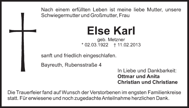 Hier finden Sie alle Traueranzeigen aus der Zeitung, die bisher für Else Karl erschienen sind. Weitere Traueranzeigen, die in der Zeitung erscheinen, werden hier ebenfalls aufgelistet