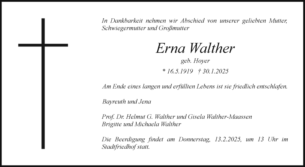 Hier finden Sie alle Traueranzeigen aus der Zeitung, die bisher für Erna Walther erschienen sind. Weitere Traueranzeigen, die in der Zeitung erscheinen, werden hier ebenfalls aufgelistet