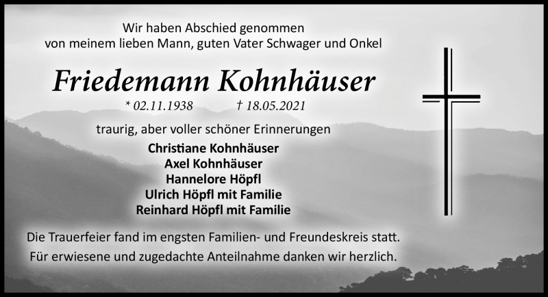 Hier finden Sie alle Traueranzeigen aus der Zeitung, die bisher für Friedemann Kohnhäuser erschienen sind. Weitere Traueranzeigen, die in der Zeitung erscheinen, werden hier ebenfalls aufgelistet
