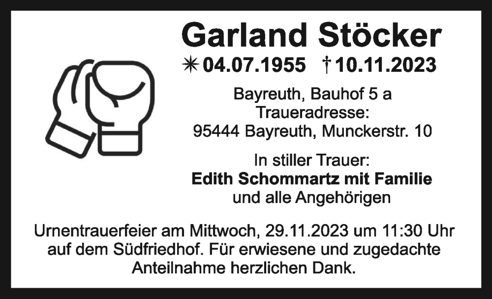 Hier finden Sie alle Traueranzeigen aus der Zeitung, die bisher für Garland Stöcker erschienen sind. Weitere Traueranzeigen, die in der Zeitung erscheinen, werden hier ebenfalls aufgelistet