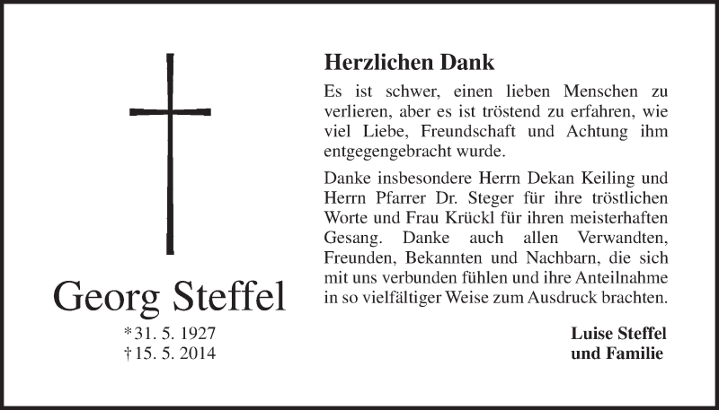 Hier finden Sie alle Traueranzeigen aus der Zeitung, die bisher für Georg Steffel erschienen sind. Weitere Traueranzeigen, die in der Zeitung erscheinen, werden hier ebenfalls aufgelistet