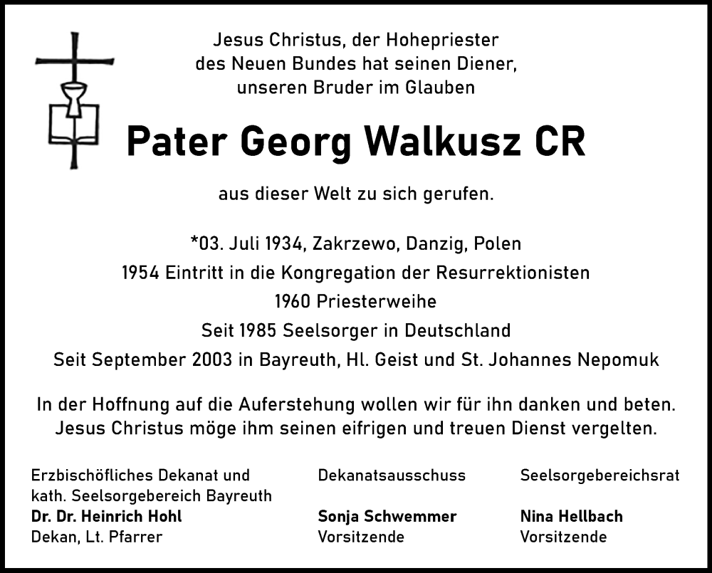 Hier finden Sie alle Traueranzeigen aus der Zeitung, die bisher für Georg Walkusz erschienen sind. Weitere Traueranzeigen, die in der Zeitung erscheinen, werden hier ebenfalls aufgelistet