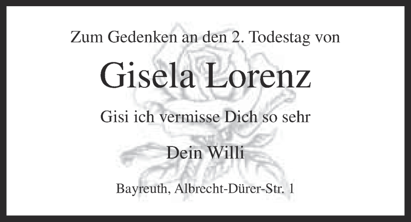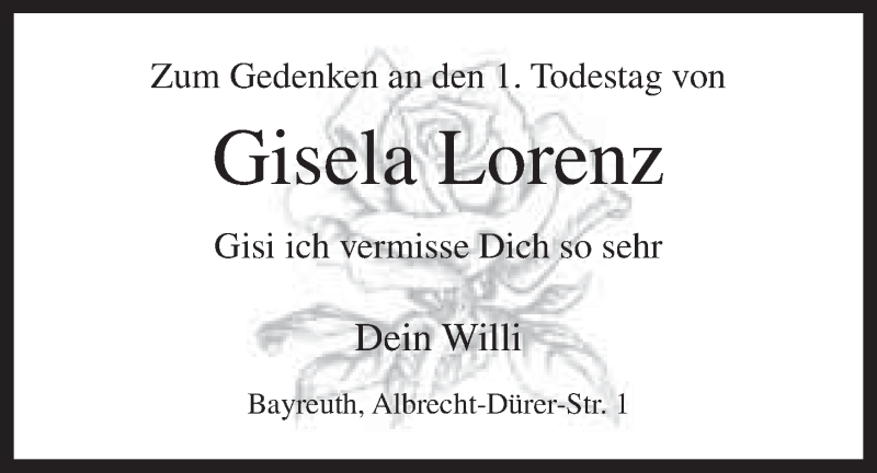 Hier finden Sie alle Traueranzeigen aus der Zeitung, die bisher für Gisela Lorenz erschienen sind. Weitere Traueranzeigen, die in der Zeitung erscheinen, werden hier ebenfalls aufgelistet