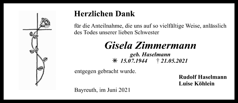 Hier finden Sie alle Traueranzeigen aus der Zeitung, die bisher für Gislea Zimmermann erschienen sind. Weitere Traueranzeigen, die in der Zeitung erscheinen, werden hier ebenfalls aufgelistet