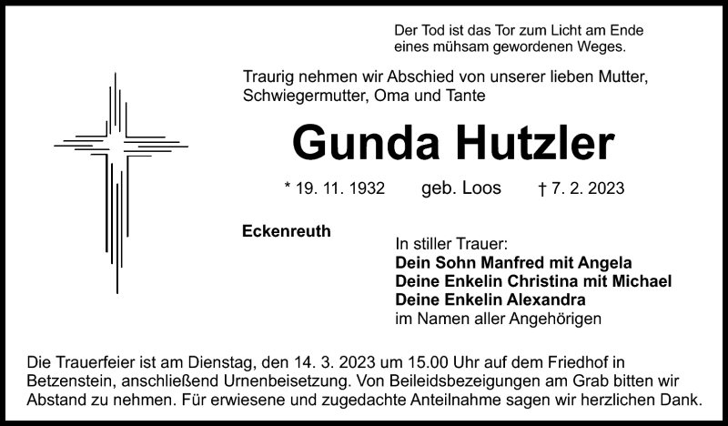 Hier finden Sie alle Traueranzeigen aus der Zeitung, die bisher für Gunda Hutzler erschienen sind. Weitere Traueranzeigen, die in der Zeitung erscheinen, werden hier ebenfalls aufgelistet