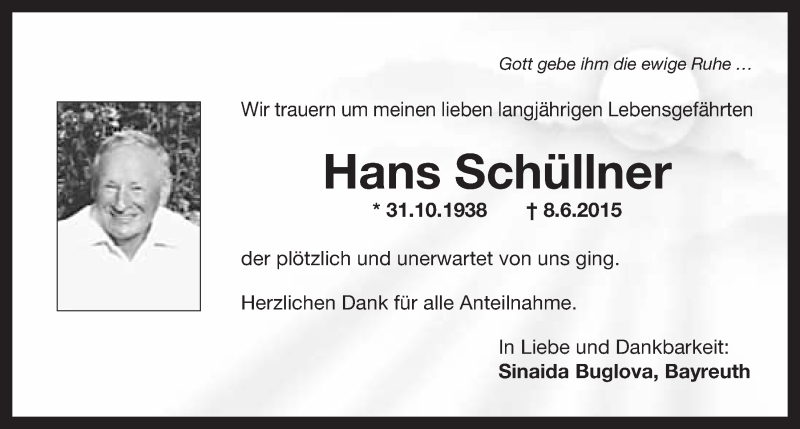 Hier finden Sie alle Traueranzeigen aus der Zeitung, die bisher für Hans Schüllner erschienen sind. Weitere Traueranzeigen, die in der Zeitung erscheinen, werden hier ebenfalls aufgelistet