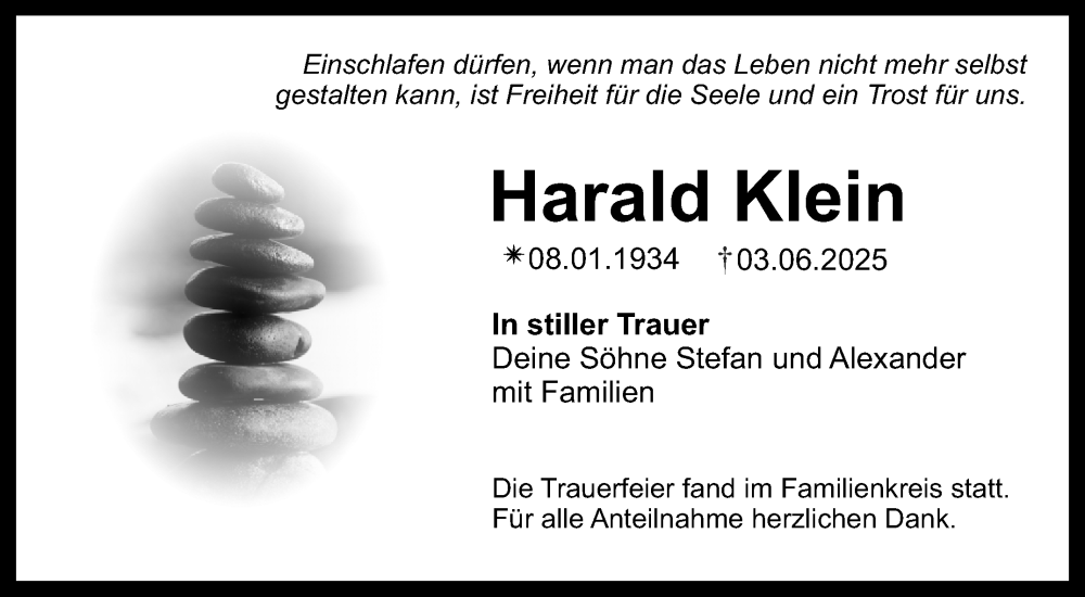 Hier finden Sie alle Traueranzeigen aus der Zeitung, die bisher für Harald Klein erschienen sind. Weitere Traueranzeigen, die in der Zeitung erscheinen, werden hier ebenfalls aufgelistet
