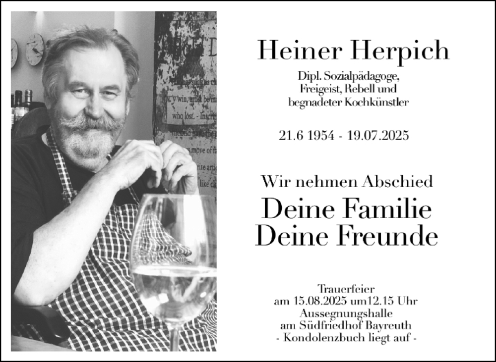 Hier finden Sie alle Traueranzeigen aus der Zeitung, die bisher für Heiner Herpich erschienen sind. Weitere Traueranzeigen, die in der Zeitung erscheinen, werden hier ebenfalls aufgelistet