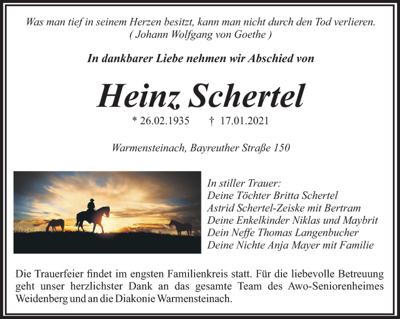 Hier finden Sie alle Traueranzeigen aus der Zeitung, die bisher für Heinz Schertel erschienen sind. Weitere Traueranzeigen, die in der Zeitung erscheinen, werden hier ebenfalls aufgelistet