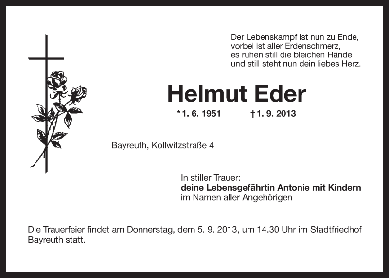 Hier finden Sie alle Traueranzeigen aus der Zeitung, die bisher für Helmut Eder erschienen sind. Weitere Traueranzeigen, die in der Zeitung erscheinen, werden hier ebenfalls aufgelistet