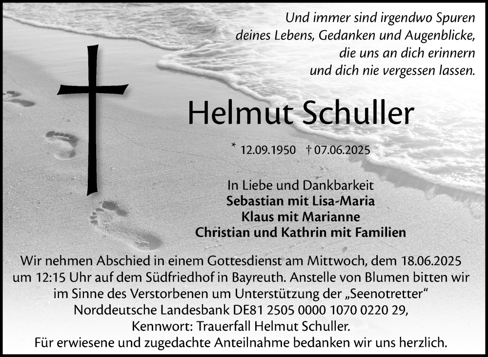 Hier finden Sie alle Traueranzeigen aus der Zeitung, die bisher für Helmut Schuller erschienen sind. Weitere Traueranzeigen, die in der Zeitung erscheinen, werden hier ebenfalls aufgelistet