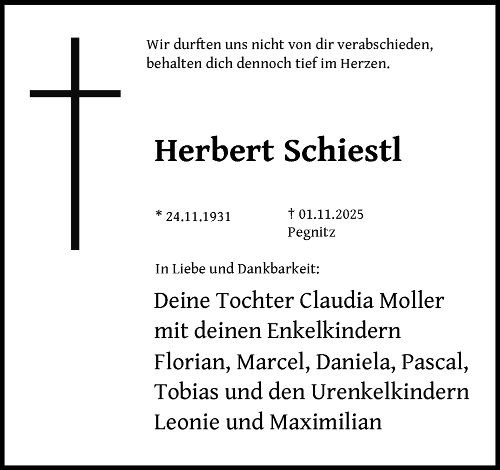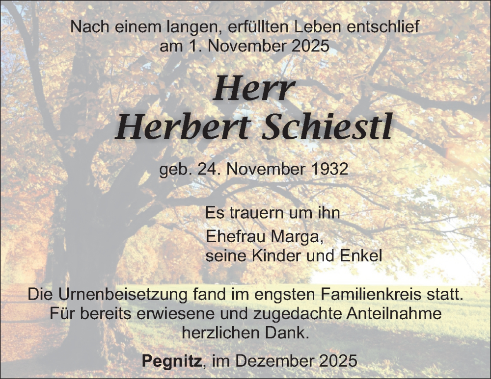 Hier finden Sie alle Traueranzeigen aus der Zeitung, die bisher für Herbert Schiestl erschienen sind. Weitere Traueranzeigen, die in der Zeitung erscheinen, werden hier ebenfalls aufgelistet