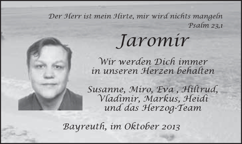 Hier finden Sie alle Traueranzeigen aus der Zeitung, die bisher für Jaromir Fechar erschienen sind. Weitere Traueranzeigen, die in der Zeitung erscheinen, werden hier ebenfalls aufgelistet