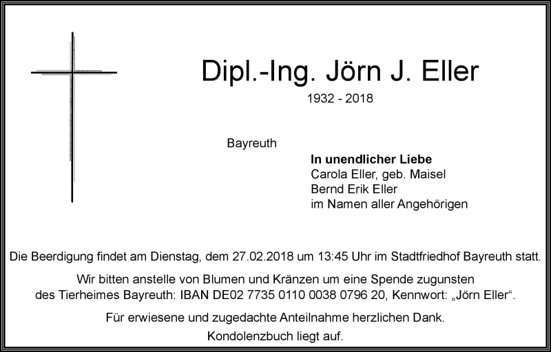 Hier finden Sie alle Traueranzeigen aus der Zeitung, die bisher für Jörn Eller erschienen sind. Weitere Traueranzeigen, die in der Zeitung erscheinen, werden hier ebenfalls aufgelistet