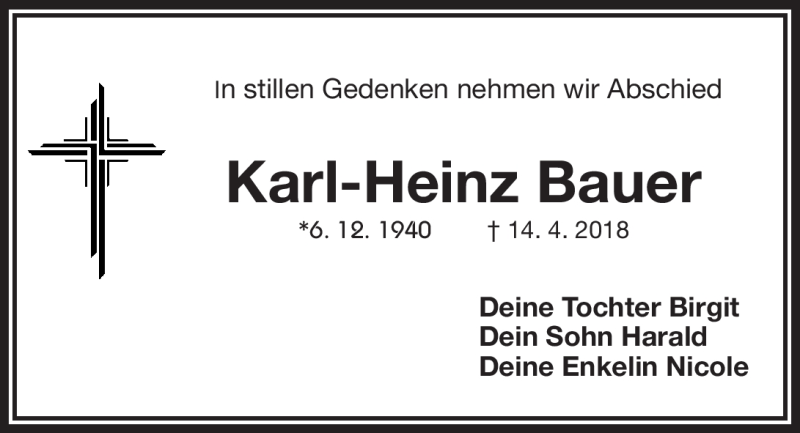 Hier finden Sie alle Traueranzeigen aus der Zeitung, die bisher für Karl-Heinz Bauer erschienen sind. Weitere Traueranzeigen, die in der Zeitung erscheinen, werden hier ebenfalls aufgelistet