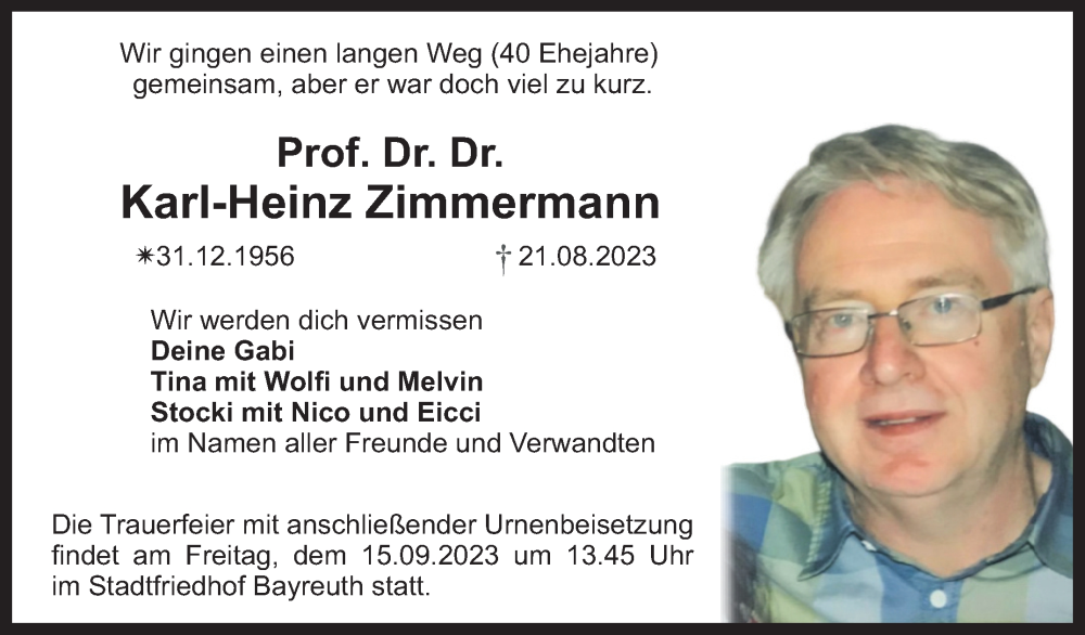 Hier finden Sie alle Traueranzeigen aus der Zeitung, die bisher für Karl-Heinz Zimmermann erschienen sind. Weitere Traueranzeigen, die in der Zeitung erscheinen, werden hier ebenfalls aufgelistet