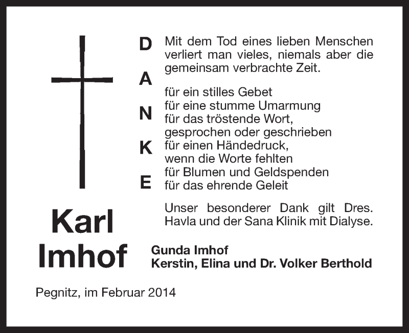 Hier finden Sie alle Traueranzeigen aus der Zeitung, die bisher für Karl Imhof erschienen sind. Weitere Traueranzeigen, die in der Zeitung erscheinen, werden hier ebenfalls aufgelistet