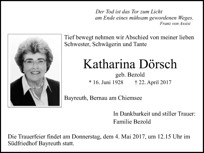 Hier finden Sie alle Traueranzeigen aus der Zeitung, die bisher für Katharina Dörsch erschienen sind. Weitere Traueranzeigen, die in der Zeitung erscheinen, werden hier ebenfalls aufgelistet