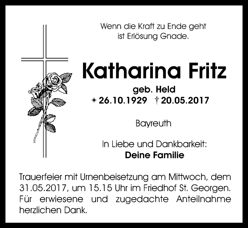 Hier finden Sie alle Traueranzeigen aus der Zeitung, die bisher für Katharina Fritz erschienen sind. Weitere Traueranzeigen, die in der Zeitung erscheinen, werden hier ebenfalls aufgelistet
