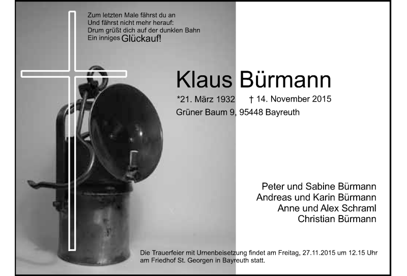 Hier finden Sie alle Traueranzeigen aus der Zeitung, die bisher für Klaus Bürmann erschienen sind. Weitere Traueranzeigen, die in der Zeitung erscheinen, werden hier ebenfalls aufgelistet