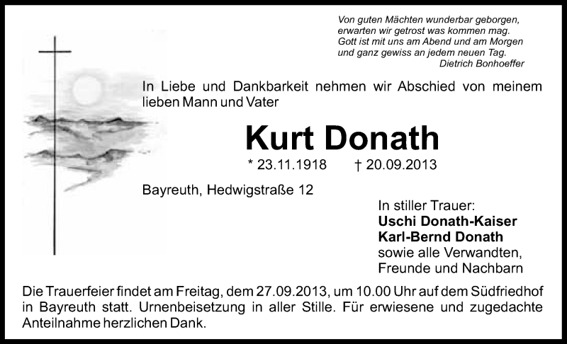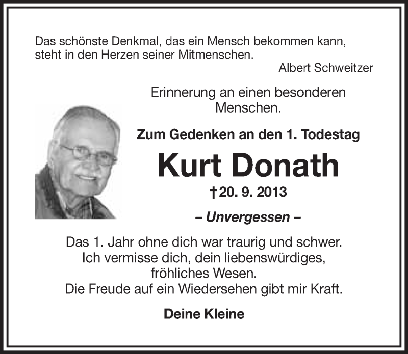 Hier finden Sie alle Traueranzeigen aus der Zeitung, die bisher für Kurt Donath erschienen sind. Weitere Traueranzeigen, die in der Zeitung erscheinen, werden hier ebenfalls aufgelistet