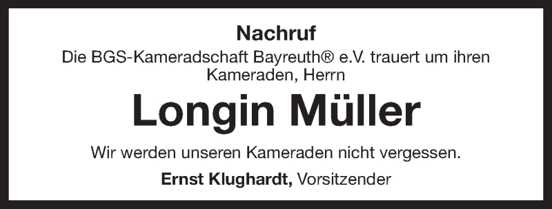 Hier finden Sie alle Traueranzeigen aus der Zeitung, die bisher für Longin Müller erschienen sind. Weitere Traueranzeigen, die in der Zeitung erscheinen, werden hier ebenfalls aufgelistet