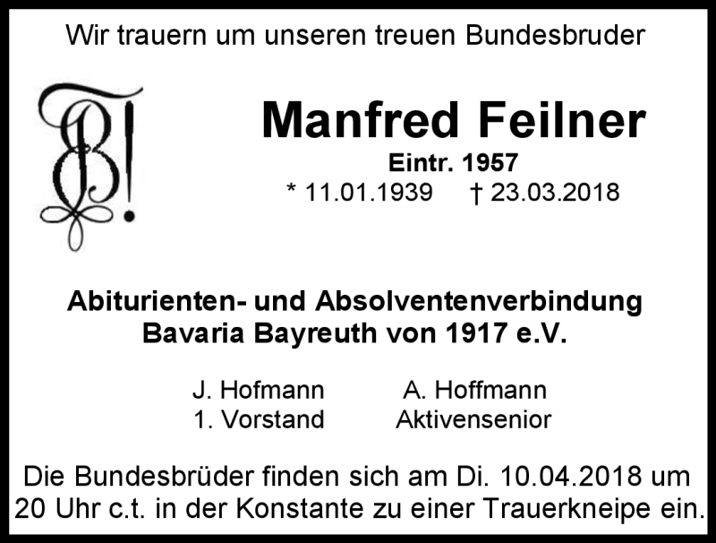 Hier finden Sie alle Traueranzeigen aus der Zeitung, die bisher für Manfred Feilner erschienen sind. Weitere Traueranzeigen, die in der Zeitung erscheinen, werden hier ebenfalls aufgelistet