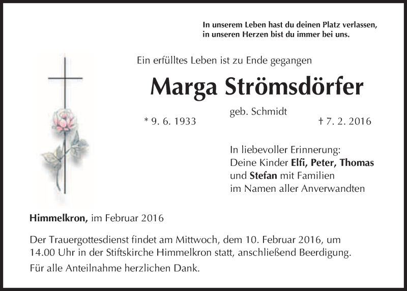 Hier finden Sie alle Traueranzeigen aus der Zeitung, die bisher für Marga Strömsdörfer erschienen sind. Weitere Traueranzeigen, die in der Zeitung erscheinen, werden hier ebenfalls aufgelistet