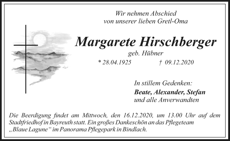 Hier finden Sie alle Traueranzeigen aus der Zeitung, die bisher für Margarete Hirschberger erschienen sind. Weitere Traueranzeigen, die in der Zeitung erscheinen, werden hier ebenfalls aufgelistet