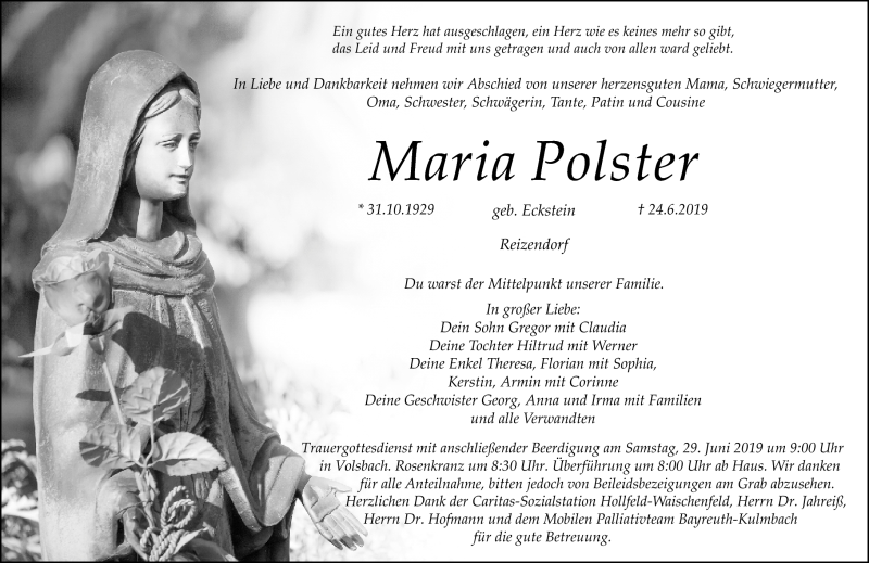 Hier finden Sie alle Traueranzeigen aus der Zeitung, die bisher für Maria Polster erschienen sind. Weitere Traueranzeigen, die in der Zeitung erscheinen, werden hier ebenfalls aufgelistet