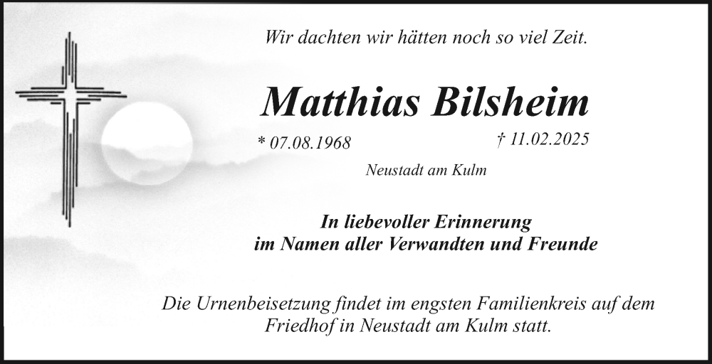 Hier finden Sie alle Traueranzeigen aus der Zeitung, die bisher für Matthias Bilsheim erschienen sind. Weitere Traueranzeigen, die in der Zeitung erscheinen, werden hier ebenfalls aufgelistet