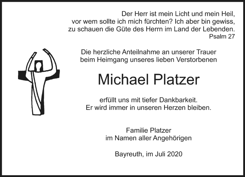 Hier finden Sie alle Traueranzeigen aus der Zeitung, die bisher für Michael Platzer erschienen sind. Weitere Traueranzeigen, die in der Zeitung erscheinen, werden hier ebenfalls aufgelistet