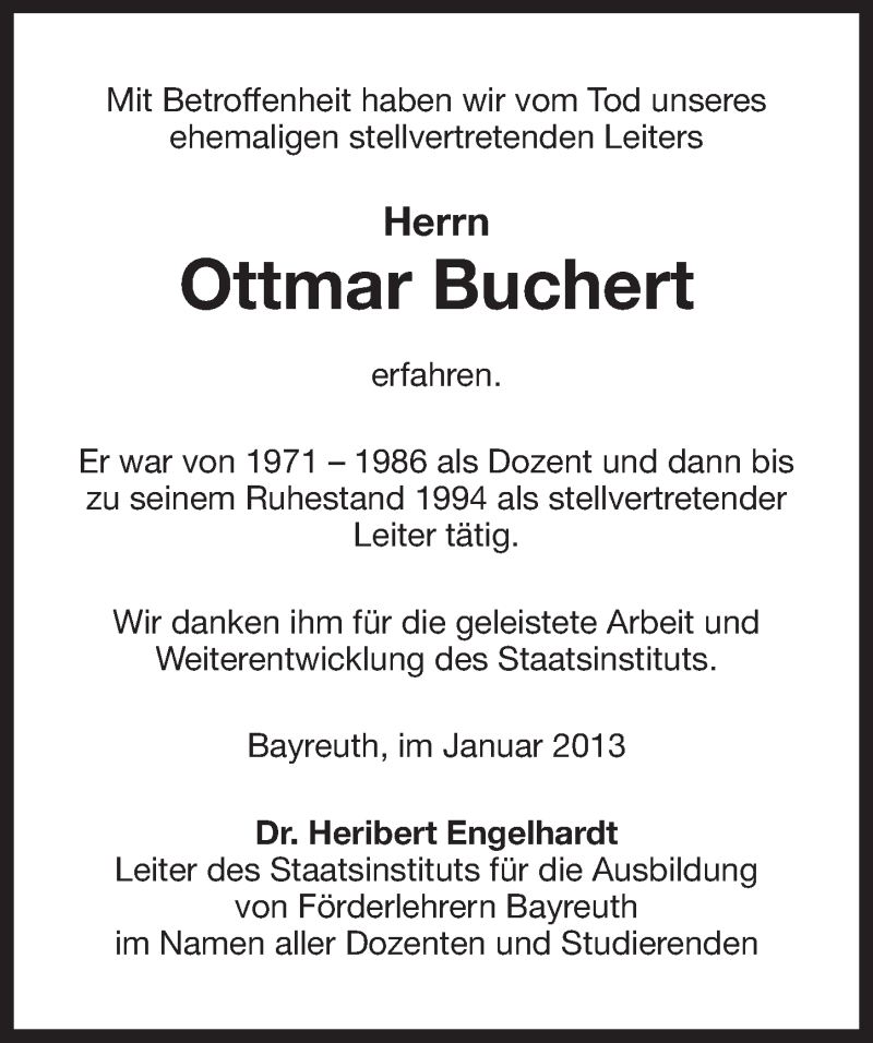 Hier finden Sie alle Traueranzeigen aus der Zeitung, die bisher für Ottmar Buchert erschienen sind. Weitere Traueranzeigen, die in der Zeitung erscheinen, werden hier ebenfalls aufgelistet