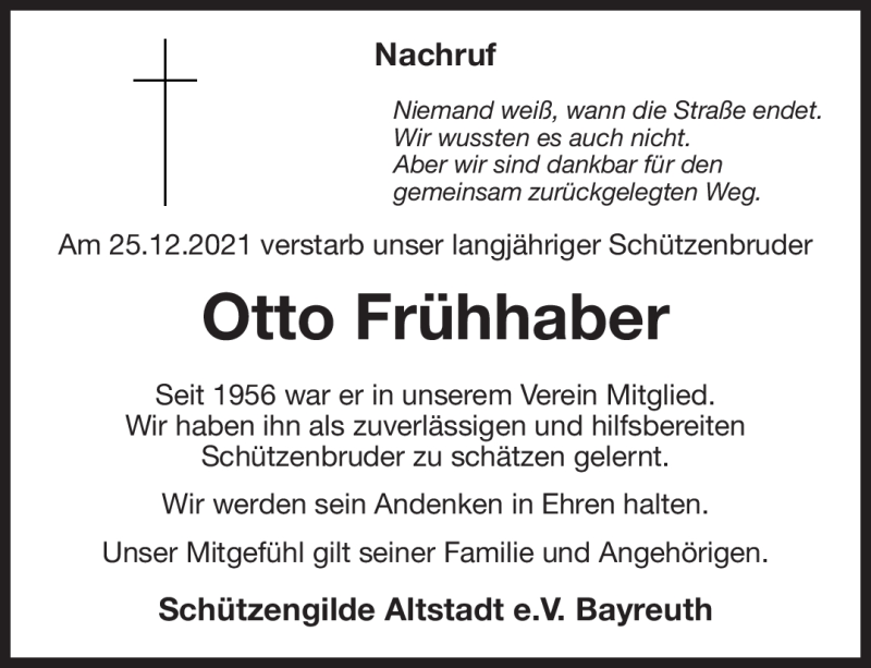 Hier finden Sie alle Traueranzeigen aus der Zeitung, die bisher für Otto Frühhaber erschienen sind. Weitere Traueranzeigen, die in der Zeitung erscheinen, werden hier ebenfalls aufgelistet