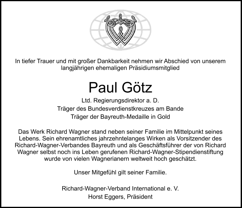 Hier finden Sie alle Traueranzeigen aus der Zeitung, die bisher für Paul Götz erschienen sind. Weitere Traueranzeigen, die in der Zeitung erscheinen, werden hier ebenfalls aufgelistet