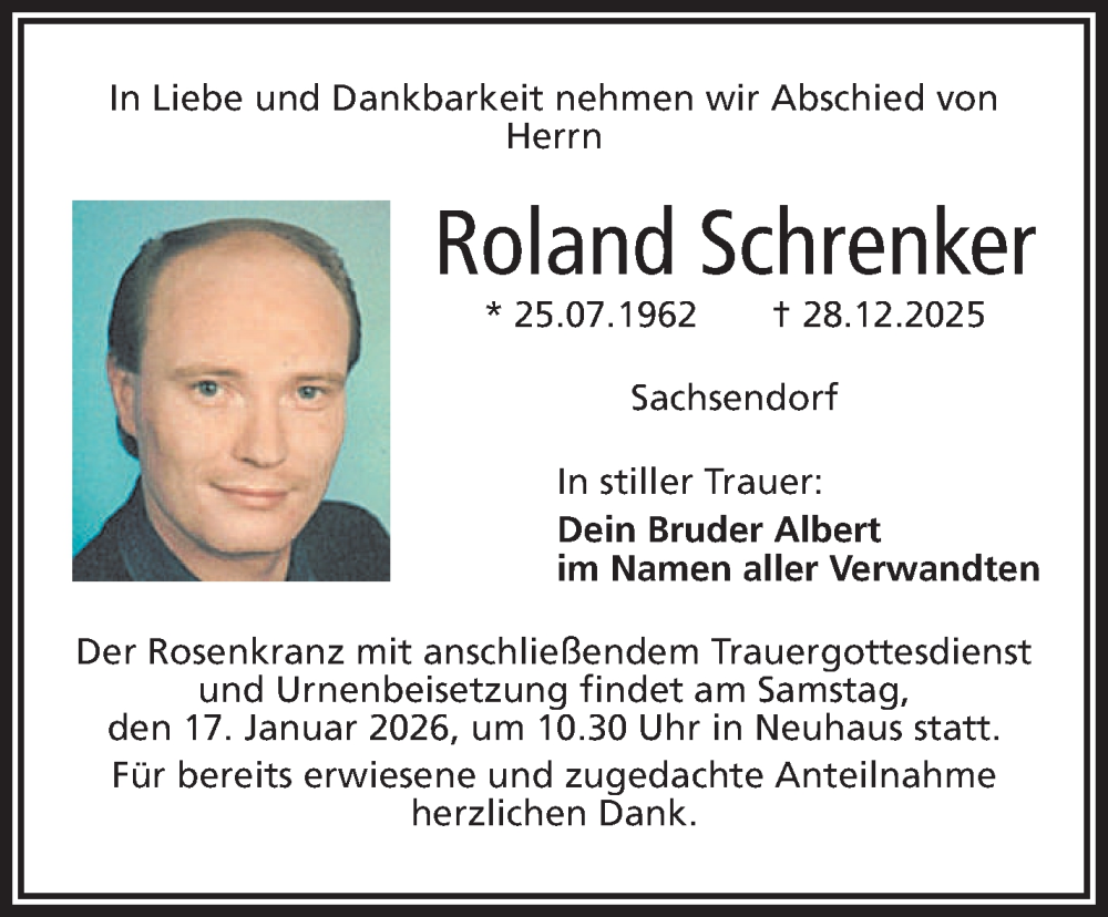 Hier finden Sie alle Traueranzeigen aus der Zeitung, die bisher für Roland Schrenker erschienen sind. Weitere Traueranzeigen, die in der Zeitung erscheinen, werden hier ebenfalls aufgelistet
