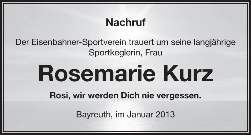 Hier finden Sie alle Traueranzeigen aus der Zeitung, die bisher für Rosemarie Kurz erschienen sind. Weitere Traueranzeigen, die in der Zeitung erscheinen, werden hier ebenfalls aufgelistet