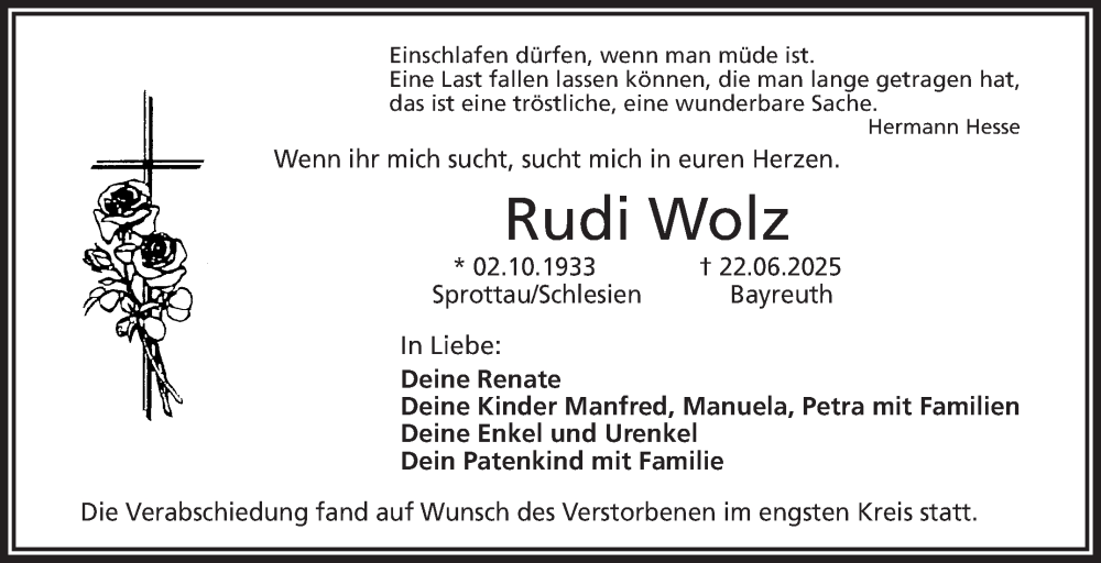 Hier finden Sie alle Traueranzeigen aus der Zeitung, die bisher für Rudi Wolz erschienen sind. Weitere Traueranzeigen, die in der Zeitung erscheinen, werden hier ebenfalls aufgelistet
