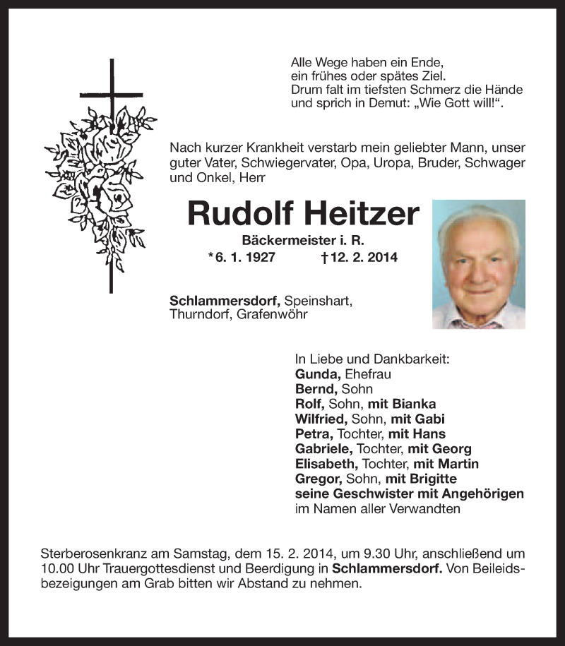 Hier finden Sie alle Traueranzeigen aus der Zeitung, die bisher für Rudolf Heitzer erschienen sind. Weitere Traueranzeigen, die in der Zeitung erscheinen, werden hier ebenfalls aufgelistet
