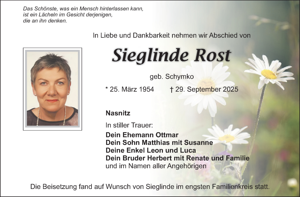 Hier finden Sie alle Traueranzeigen aus der Zeitung, die bisher für Sieglinde Rost erschienen sind. Weitere Traueranzeigen, die in der Zeitung erscheinen, werden hier ebenfalls aufgelistet
