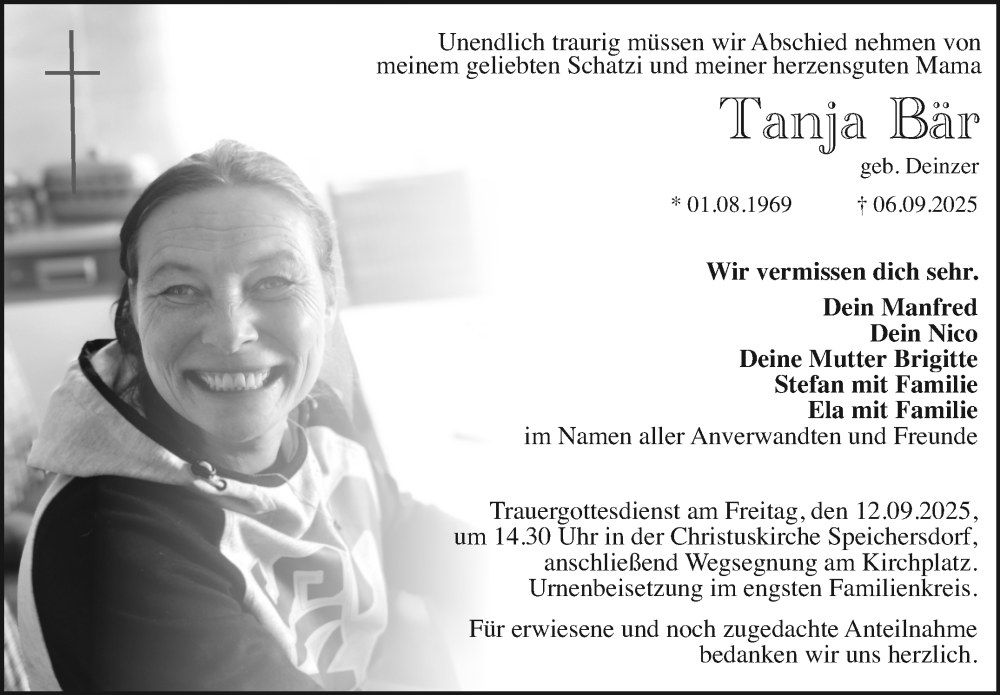 Hier finden Sie alle Traueranzeigen aus der Zeitung, die bisher für Tanja Bär erschienen sind. Weitere Traueranzeigen, die in der Zeitung erscheinen, werden hier ebenfalls aufgelistet
